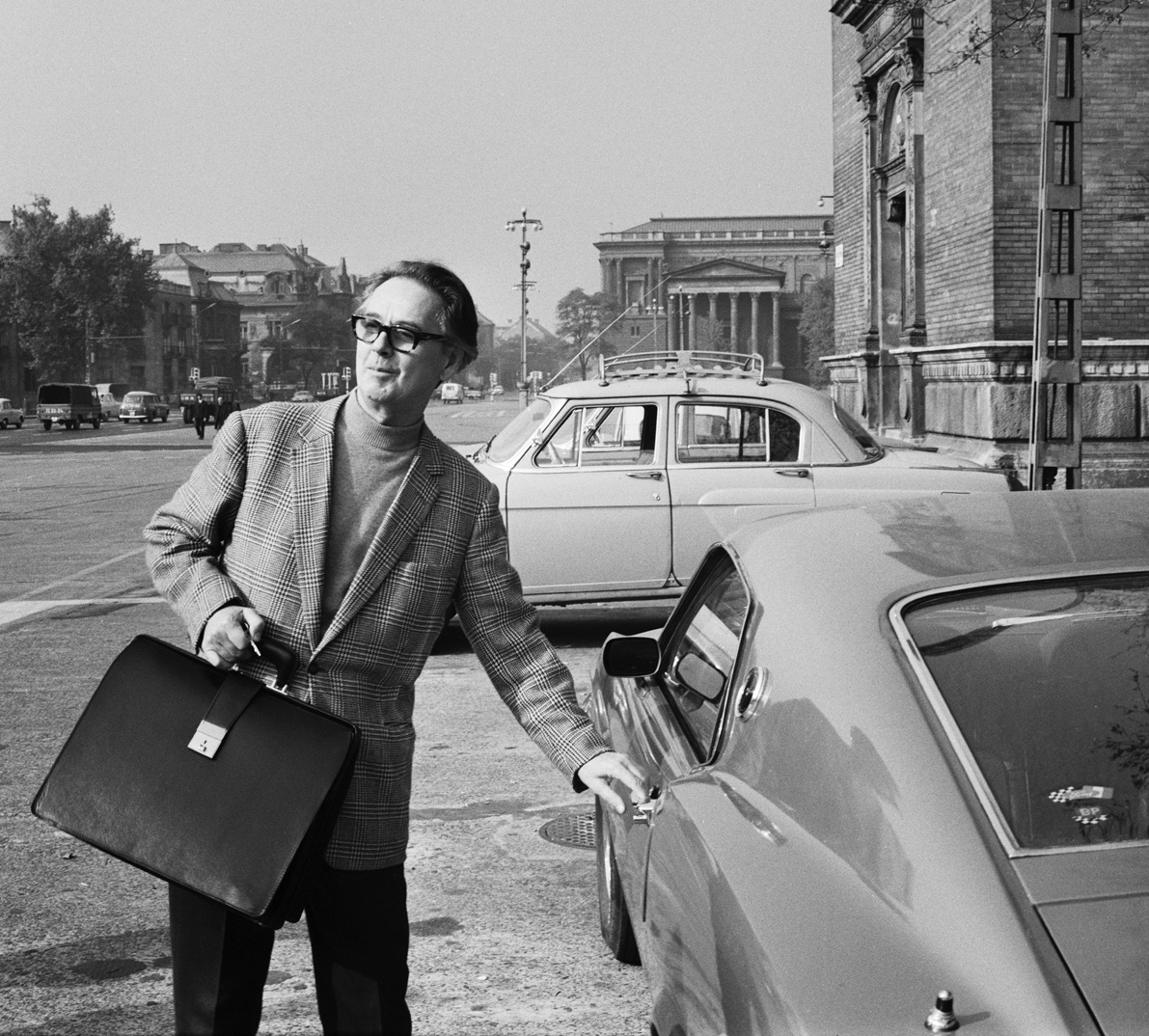 Victor Vasarely útban vörös Ford Mustangja feléBudapest, 1969. októberFotó: Balla DemeterA “Vasarely Go Home” projekt kutatási anyagából.http://vasarelygohome.museoreinasofia.es